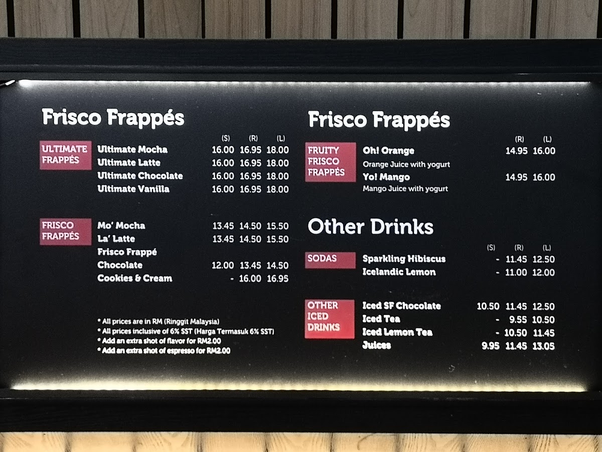 Introducing the Menu at San Francisco Coffee Melawati Mall